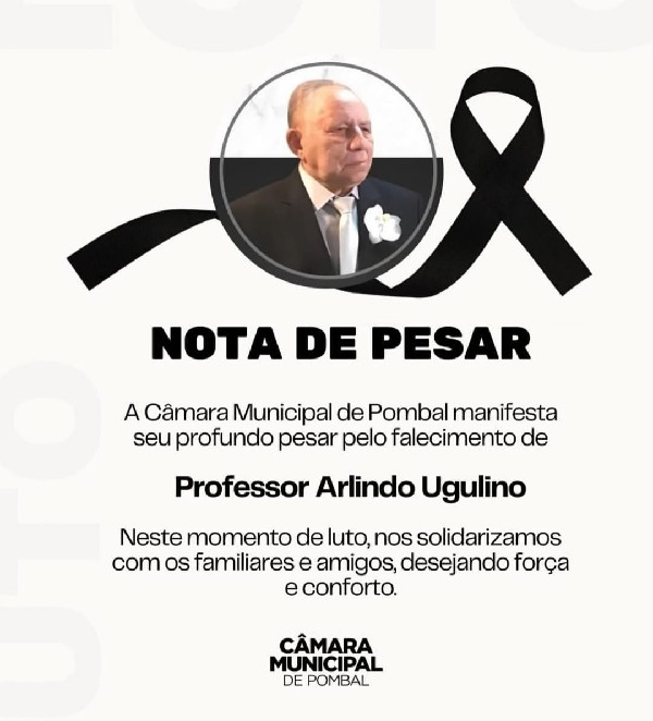 A Câmara de Vereadores da cidade de Pombal, no Sertão da Paraíba, casa "Avelino de Queiroga Cavalcanti", emitiu nesta quarta-feira (14/01/2026), uma nota de pesar pela morte do professor, advogado e promotor de justiça aposentado Arlindo Ugulino, aos 92 anos, em João Pessoa.